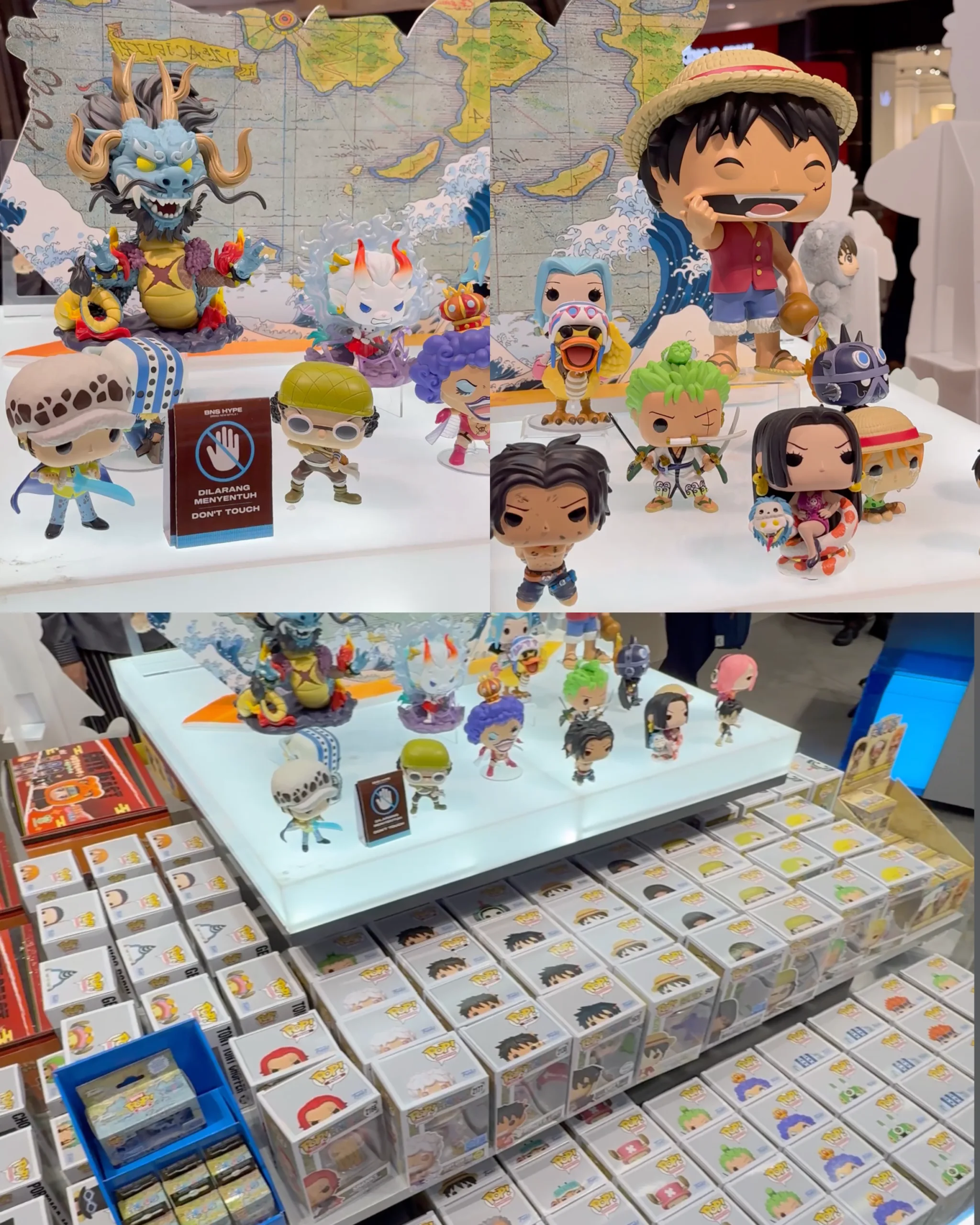 Deretan koleksi populer lain juga turut hadir, termasuk merchandise dari anime legendaris One Piece. Koleksinya cukup beragam dan menjadi salah satu yang paling diminati oleh para penggemar.