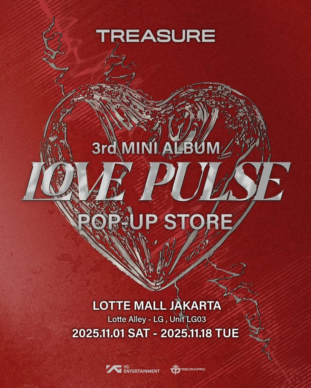 Untuk lokasi Love Pulse Pop-Up Store di Lotte Mall Jakarta (Lotte Alley – LG, Unit LG03) pada tanggal 1 November – 18 November 2025.